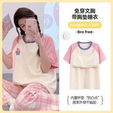 纯棉带胸垫女士睡衣可外穿夏季休闲宽松短袖长裤可外穿家居服¥ 78