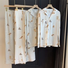 铜牛汗布长袖开襟翻领印花女套春夏睡衣家居服套装VJ114¥ 244¥ 408
