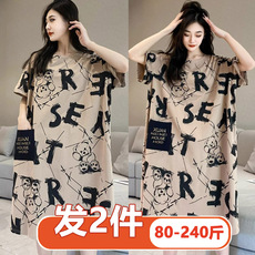 芬腾睡裙女夏季薄款针织棉短袖大码家居服2024年新款休闲中长裙¥ 49