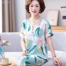 睡衣女士夏季短袖短裤妈妈绵绸薄款中老年人大码可外穿家居服套装¥ 29.9