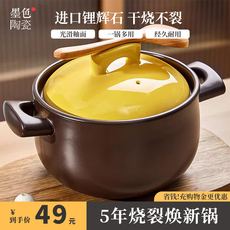 墨色陶瓷砂锅炖锅家用燃气煤气灶专用耐高温煲汤锅沙锅煲干烧不裂¥ 69¥ 138