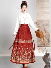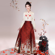如寄明制汉服原创方领对襟绣花上袄印花马面裙中国风日常古装秋冬¥ 84