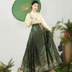 【春秋衣典】竹影 明制汉服女织金妆花马面裙飞机袖套装改良汉服¥ 199