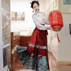 新中式国风马面裙今年流行时尚爆款明制汉服红色织锦半身裙子女¥ 198
