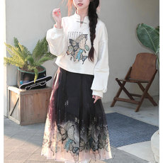 新中式京云染白色马面裙两件套装女秋冬国风一字肩上衣改良版汉服¥ 155
