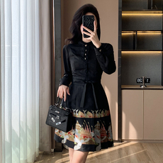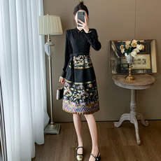 新中式轻国风马面裙套装女秋冬季气质针织长袖上衣半身裙子两件套¥ 93