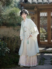 新款七月夕汉服女款薄荷新中式明制立领对襟长衫绣花合领衫马面裙¥ 398