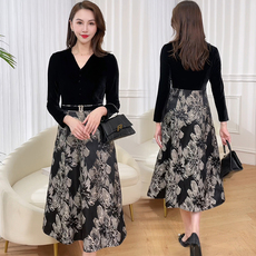 时尚拼接金丝绒连衣裙2023新款V领气质减龄女神范遮肚显瘦马面裙¥ 214.2¥ 476
