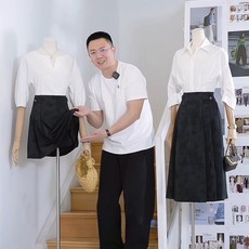随淇自然晨曦胖mm大码日常上班穿的汉服黑色新中式衬衫短马面裙¥ 286