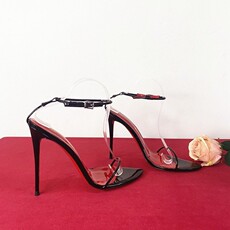 杨树林方头黑色字母高跟鞋女2025性感气质名媛一字带露趾绝美凉鞋¥ 258