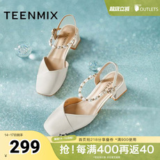天美意仙女一字带粗跟凉鞋女高跟鞋时装凉鞋新款KI002BL4¥ 409¥ 859