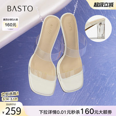 百思图季夏新款仙女风水晶跟一字拖粗高跟外穿女拖鞋F3121BT5¥ 449¥ 699
