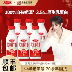 【周期购】三元72°450ml*6瓶装共11期 北京鲜牛奶巴士杀菌¥ 54.6
