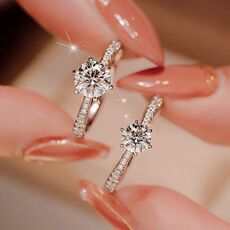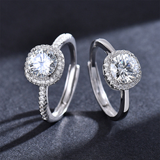 999纯银求婚戒指女一克拉钻戒婚戒结婚订婚婚礼仪式用女戒情侣戒