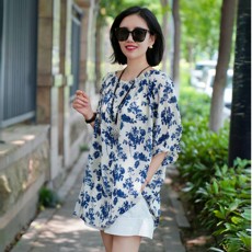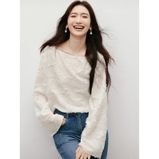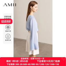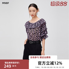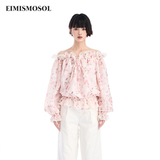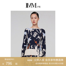 IMM尹默女装一字领长袖气质宽松自然共舞印花雪纺衫上衣