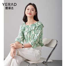 娅丽达漂亮减龄碎花衬衫女2024春季新款荷叶边雪纺小衫一字领上衣