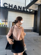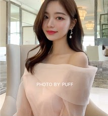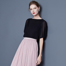一字领雪纺上衣