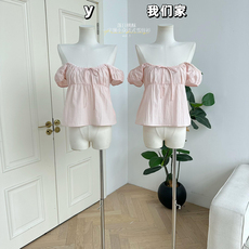 爱衣服季一字肩荷叶边短袖雪纺衫女百搭一字领上衣