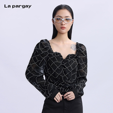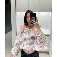 lisa同款衣服黑色法式复古波点一字领露肩吊带雪纺衬衫短款上衣女