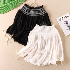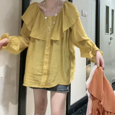 新款长袖衬衫女韩版甜美一字领两穿层层荷叶边拼接雪纺衫上衣潮