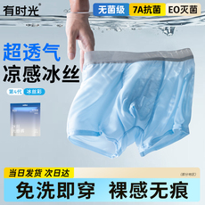 有时光一次性内裤7A抗菌男士冰丝凉感无痕平角裤头纯棉旅行短裤