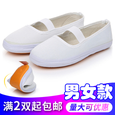 男女学生大人太极鞋儿童武术鞋休闲运动鞋帆布一脚蹬小白鞋练功鞋