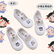 哪吒儿童幼儿园室内一脚蹬小白鞋男女孩帆布鞋小学生软底表演鞋子