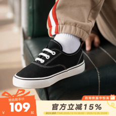 pony童鞋儿童帆布鞋透气软底黑色大童男女童运动板鞋一脚蹬学生鞋