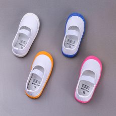 幼儿园室内鞋表演鞋儿童一脚蹬帆布鞋春秋男童女童小白鞋宝宝布鞋