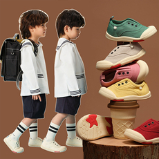 复古儿童帆布鞋男童女童幼儿园鞋森系休闲鞋一脚蹬室内鞋防滑软底