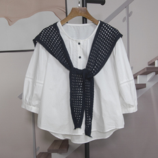 时尚宽松洋气薄款七分袖衬衫女带镂空披肩两件套2025早秋新款5275