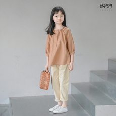 女士夏款七分袖衬衫女时尚格子印花小衫休闲套头洋气宽松显瘦衬衣