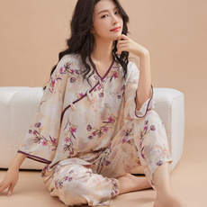 2025时尚睡衣套装女春夏七分袖九分裤长裤套头家居服春季薄款宽松