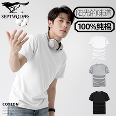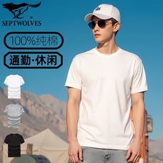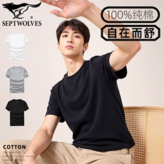 七匹狼纯棉打底衫男士短袖全棉100%白色运动T恤男款纯白男生内搭