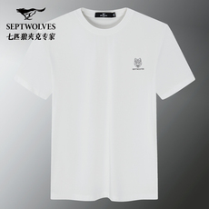 七匹狼短袖t恤7A抗菌100纯棉圆领字母印花男士打底衫夏天简约上衣
