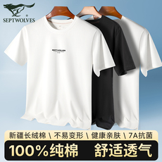 七匹狼7A银离子抗菌100纯棉长绒棉夏季圆领印花男士打底衫短袖t恤