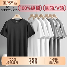 七匹狼春夏季纯棉短袖t恤男圆领V领宽松男士纯白色打底衫新款上衣