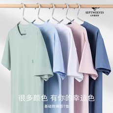 七匹狼男士短袖男纯棉T恤上衣100%全棉打底男款半袖体恤夏季汗衫V