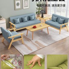 阳台北欧日式小户型客厅原木风实木民宿卧室双人三人位布艺小沙发