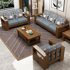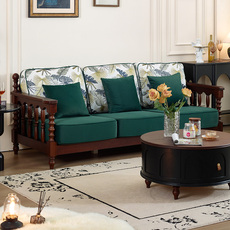 中式全实木沙发农村自建房小户型三人位冬夏两用客厅橡木布艺沙发