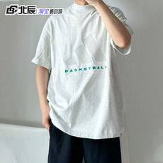 adidas三叶草短袖男女款BASKETBALL简约宽松半高领休闲T恤IW5645