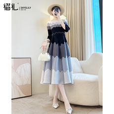 2025秋季新款三宅褶皱连衣裙通勤渐变假两件套装大码西装裙女装