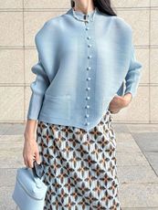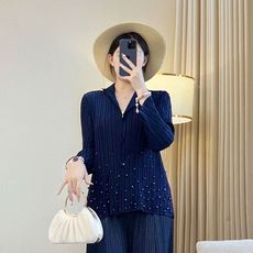三宅风褶衣外套长袖女时尚气质褶皱开衫上衣简约气质钉珠洋气女装