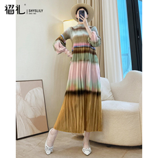 三宅褶皱连衣裙女高端外贸女装长裙披肩两件套