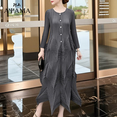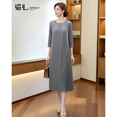 时尚高端连衣裙春季2026新款女装三宅褶皱灰色裙子宽松百褶中长裙