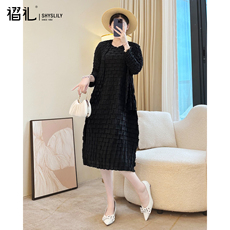 三宅风褶皱连衣裙2026春季新款设计感宽松大码女装百搭显瘦大摆裙