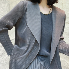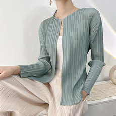 三宅褶皱气质高级感轻熟风长袖外搭开衫上衣秋天秋季秋装外套女