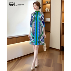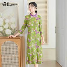 三宅褶皱妈妈连衣裙春季新款碎花裙小众大码女装长裙新中式旗袍