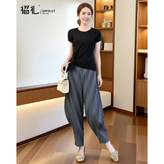 2026新款三宅风褶皱九分哈伦裤女夏季宽松显瘦百搭休闲裤