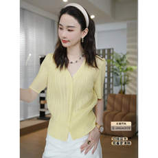 三宅短袖女t恤夏季薄款设计感上衣女装工厂直销肌理感褶皱小衫潮